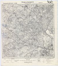 Unsere große Sammlung von Meßtischblättern, der topographischen Landkarte im Maßstab 1:25.000, ist sehr vielseitig. Am Kartenrand sind meistens Hinweise über die Herkunft. Auch das Herstellungsdatum meistens auch mit Korrekturen ist zu finden. Die meisten Karten in der Sammlung sind aus dem 20. Jahrhundert bis 1945.