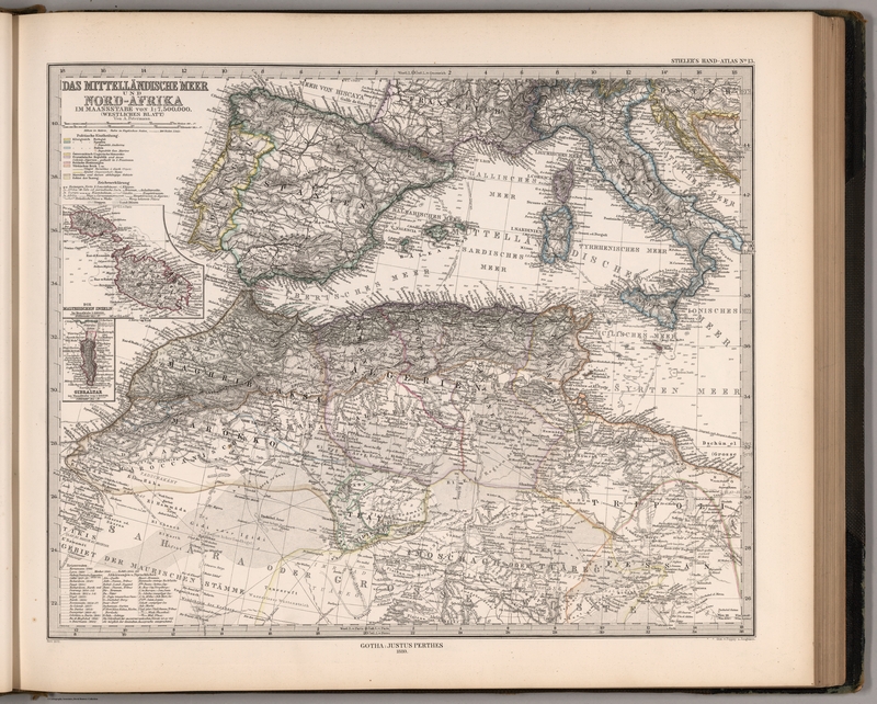 Das Mittellänidche Meer in zwey Blättern: Westliches Blatt als Speical Karte der Nordafricanischen Länder – Stielers Weltatlas von 1818
