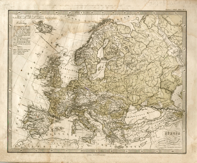 Europa mit politischer Begrentung der einzelnen Staaten – Stielers Weltatlas von 1819