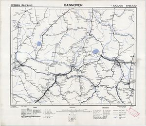Eisenbahnkarte Deutschlands – Blatt 20 – Hannover (1944) 1:300.000 [Britische Kriegsversion]