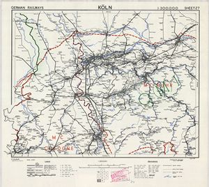 Eisenbahnkarte Deutschlands – Blatt 27 – Köln (1945) 1:300.000 [Britische Kriegsversion]