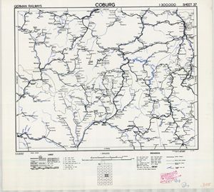 Eisenbahnkarte Deutschlands – Blatt 37 – Coburg (1945) 1:300.000 [Britische Kriegsversion]