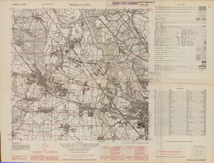 Hier finden Sie ein Meßtischblätter 1:25.000, von Deutschland, aus der Zeit der 1930er Jahre. Diese Karte wurde von Amerikanern damals bei Eisenschmidt gekauft und wurde in den USA für das amerikanische, später britische und französische Militär, bearbeitet. Überarbeitet in Form von Färbungen und Markierungen wurden diese Karten bis in die 50er Jahre.
