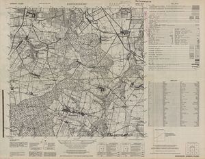 Hier finden Sie ein Meßtischblätter 1:25.000, von Deutschland, aus der Zeit der 1930er Jahre. Diese Karte wurde von Amerikanern damals bei Eisenschmidt gekauft und wurde in den USA für das amerikanische, später britische und französische Militär, bearbeitet. Überarbeitet in Form von Färbungen und Markierungen wurden diese Karten bis in die 50er Jahre.