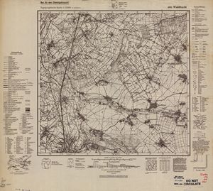Hier finden Sie ein Meßtischblätter 1:25.000, von Deutschland, aus der Zeit der 1930er Jahre. Diese Karte wurde von Amerikanern damals bei Eisenschmidt gekauft und wurde in den USA für das amerikanische, später britische und französische Militär, bearbeitet. Überarbeitet in Form von Färbungen und Markierungen wurden diese Karten bis in die 50er Jahre.