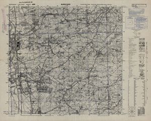 Hier finden Sie ein Meßtischblätter 1:25.000, von Deutschland, aus der Zeit der 1930er Jahre. Diese Karte wurde von Amerikanern damals bei Eisenschmidt gekauft und wurde in den USA für das amerikanische, später britische und französische Militär, bearbeitet. Überarbeitet in Form von Färbungen und Markierungen wurden diese Karten bis in die 50er Jahre.