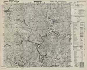 Hier finden Sie ein Meßtischblätter 1:25.000, von Deutschland, aus der Zeit der 1930er Jahre. Diese Karte wurde von Amerikanern damals bei Eisenschmidt gekauft und wurde in den USA für das amerikanische, später britische und französische Militär, bearbeitet. Überarbeitet in Form von Färbungen und Markierungen wurden diese Karten bis in die 50er Jahre.