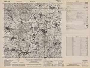 Hier finden Sie ein Meßtischblätter 1:25.000, von Deutschland, aus der Zeit der 1930er Jahre. Diese Karte wurde von Amerikanern damals bei Eisenschmidt gekauft und wurde in den USA für das amerikanische, später britische und französische Militär, bearbeitet. Überarbeitet in Form von Färbungen und Markierungen wurden diese Karten bis in die 50er Jahre.