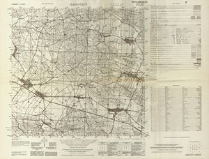 Hier finden Sie ein Meßtischblätter 1:25.000, von Deutschland, aus der Zeit der 1930er Jahre. Diese Karte wurde von Amerikanern damals bei Eisenschmidt gekauft und wurde in den USA für das amerikanische, später britische und französische Militär, bearbeitet. Überarbeitet in Form von Färbungen und Markierungen wurden diese Karten bis in die 50er Jahre.