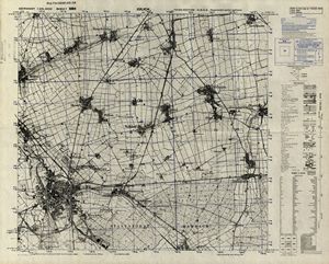 Hier finden Sie ein Meßtischblätter 1:25.000, von Deutschland, aus der Zeit der 1930er Jahre. Diese Karte wurde von Amerikanern damals bei Eisenschmidt gekauft und wurde in den USA für das amerikanische, später britische und französische Militär, bearbeitet. Überarbeitet in Form von Färbungen und Markierungen wurden diese Karten bis in die 50er Jahre.