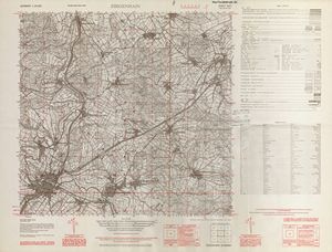 Hier finden Sie ein Meßtischblätter 1:25.000, von Deutschland, aus der Zeit der 1930er Jahre. Diese Karte wurde von Amerikanern damals bei Eisenschmidt gekauft und wurde in den USA für das amerikanische, später britische und französische Militär, bearbeitet. Überarbeitet in Form von Färbungen und Markierungen wurden diese Karten bis in die 50er Jahre.