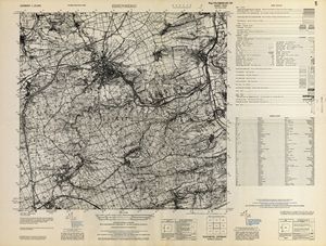 Hier finden Sie ein Meßtischblätter 1:25.000, von Deutschland, aus der Zeit der 1930er Jahre. Diese Karte wurde von Amerikanern damals bei Eisenschmidt gekauft und wurde in den USA für das amerikanische, später britische und französische Militär, bearbeitet. Überarbeitet in Form von Färbungen und Markierungen wurden diese Karten bis in die 50er Jahre.
