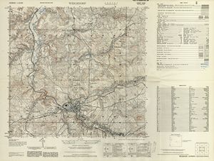 Hier finden Sie ein Meßtischblätter 1:25.000, von Deutschland, aus der Zeit der 1930er Jahre. Diese Karte wurde von Amerikanern damals bei Eisenschmidt gekauft und wurde in den USA für das amerikanische, später britische und französische Militär, bearbeitet. Überarbeitet in Form von Färbungen und Markierungen wurden diese Karten bis in die 50er Jahre.
