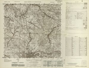 Hier finden Sie ein Meßtischblätter 1:25.000, von Deutschland, aus der Zeit der 1930er Jahre. Diese Karte wurde von Amerikanern damals bei Eisenschmidt gekauft und wurde in den USA für das amerikanische, später britische und französische Militär, bearbeitet. Überarbeitet in Form von Färbungen und Markierungen wurden diese Karten bis in die 50er Jahre.