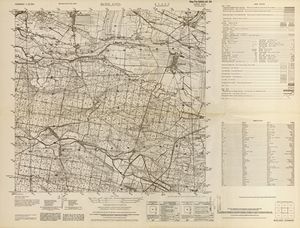 Hier finden Sie ein Meßtischblätter 1:25.000, von Deutschland, aus der Zeit der 1930er Jahre. Diese Karte wurde von Amerikanern damals bei Eisenschmidt gekauft und wurde in den USA für das amerikanische, später britische und französische Militär, bearbeitet. Überarbeitet in Form von Färbungen und Markierungen wurden diese Karten bis in die 50er Jahre.