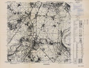 Hier finden Sie ein Meßtischblätter 1:25.000, von Deutschland, aus der Zeit der 1930er Jahre. Diese Karte wurde von Amerikanern damals bei Eisenschmidt gekauft und wurde in den USA für das amerikanische, später britische und französische Militär, bearbeitet. Überarbeitet in Form von Färbungen und Markierungen wurden diese Karten bis in die 50er Jahre.