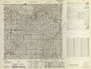 Hier finden Sie ein Meßtischblätter 1:25.000, von Deutschland, aus der Zeit der 1930er Jahre. Diese Karte wurde von Amerikanern damals bei Eisenschmidt gekauft und wurde in den USA für das amerikanische, später britische und französische Militär, bearbeitet. Überarbeitet in Form von Färbungen und Markierungen wurden diese Karten bis in die 50er Jahre.