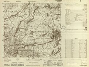 Hier finden Sie ein Meßtischblätter 1:25.000, von Deutschland, aus der Zeit der 1930er Jahre. Diese Karte wurde von Amerikanern damals bei Eisenschmidt gekauft und wurde in den USA für das amerikanische, später britische und französische Militär, bearbeitet. Überarbeitet in Form von Färbungen und Markierungen wurden diese Karten bis in die 50er Jahre.
