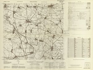 Hier finden Sie ein Meßtischblätter 1:25.000, von Deutschland, aus der Zeit der 1930er Jahre. Diese Karte wurde von Amerikanern damals bei Eisenschmidt gekauft und wurde in den USA für das amerikanische, später britische und französische Militär, bearbeitet. Überarbeitet in Form von Färbungen und Markierungen wurden diese Karten bis in die 50er Jahre.