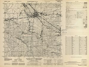 Hier finden Sie ein Meßtischblätter 1:25.000, von Deutschland, aus der Zeit der 1930er Jahre. Diese Karte wurde von Amerikanern damals bei Eisenschmidt gekauft und wurde in den USA für das amerikanische, später britische und französische Militär, bearbeitet. Überarbeitet in Form von Färbungen und Markierungen wurden diese Karten bis in die 50er Jahre.