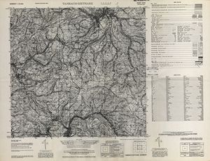Hier finden Sie ein Meßtischblätter 1:25.000, von Deutschland, aus der Zeit der 1930er Jahre. Diese Karte wurde von Amerikanern damals bei Eisenschmidt gekauft und wurde in den USA für das amerikanische, später britische und französische Militär, bearbeitet. Überarbeitet in Form von Färbungen und Markierungen wurden diese Karten bis in die 50er Jahre.