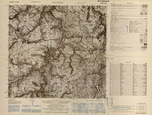 Hier finden Sie ein Meßtischblätter 1:25.000, von Deutschland, aus der Zeit der 1930er Jahre. Diese Karte wurde von Amerikanern damals bei Eisenschmidt gekauft und wurde in den USA für das amerikanische, später britische und französische Militär, bearbeitet. Überarbeitet in Form von Färbungen und Markierungen wurden diese Karten bis in die 50er Jahre.