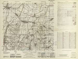 Hier finden Sie ein Meßtischblätter 1:25.000, von Deutschland, aus der Zeit der 1930er Jahre. Diese Karte wurde von Amerikanern damals bei Eisenschmidt gekauft und wurde in den USA für das amerikanische, später britische und französische Militär, bearbeitet. Überarbeitet in Form von Färbungen und Markierungen wurden diese Karten bis in die 50er Jahre.