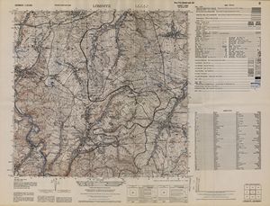 Hier finden Sie ein Meßtischblätter 1:25.000, von Deutschland, aus der Zeit der 1930er Jahre. Diese Karte wurde von Amerikanern damals bei Eisenschmidt gekauft und wurde in den USA für das amerikanische, später britische und französische Militär, bearbeitet. Überarbeitet in Form von Färbungen und Markierungen wurden diese Karten bis in die 50er Jahre.