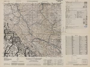 Hier finden Sie ein Meßtischblätter 1:25.000, von Deutschland, aus der Zeit der 1930er Jahre. Diese Karte wurde von Amerikanern damals bei Eisenschmidt gekauft und wurde in den USA für das amerikanische, später britische und französische Militär, bearbeitet. Überarbeitet in Form von Färbungen und Markierungen wurden diese Karten bis in die 50er Jahre.