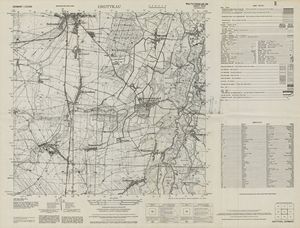Hier finden Sie ein Meßtischblätter 1:25.000, von Deutschland, aus der Zeit der 1930er Jahre. Diese Karte wurde von Amerikanern damals bei Eisenschmidt gekauft und wurde in den USA für das amerikanische, später britische und französische Militär, bearbeitet. Überarbeitet in Form von Färbungen und Markierungen wurden diese Karten bis in die 50er Jahre.