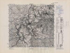 Hier finden Sie ein Meßtischblätter 1:25.000, von Deutschland, aus der Zeit der 1930er Jahre. Diese Karte wurde von Amerikanern damals bei Eisenschmidt gekauft und wurde in den USA für das amerikanische, später britische und französische Militär, bearbeitet. Überarbeitet in Form von Färbungen und Markierungen wurden diese Karten bis in die 50er Jahre.