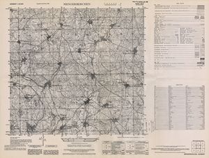 Hier finden Sie ein Meßtischblätter 1:25.000, von Deutschland, aus der Zeit der 1930er Jahre. Diese Karte wurde von Amerikanern damals bei Eisenschmidt gekauft und wurde in den USA für das amerikanische, später britische und französische Militär, bearbeitet. Überarbeitet in Form von Färbungen und Markierungen wurden diese Karten bis in die 50er Jahre.