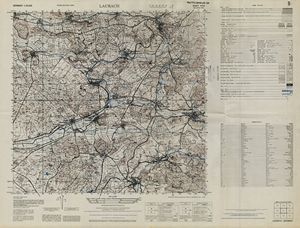 Hier finden Sie ein Meßtischblätter 1:25.000, von Deutschland, aus der Zeit der 1930er Jahre. Diese Karte wurde von Amerikanern damals bei Eisenschmidt gekauft und wurde in den USA für das amerikanische, später britische und französische Militär, bearbeitet. Überarbeitet in Form von Färbungen und Markierungen wurden diese Karten bis in die 50er Jahre.