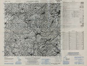 Hier finden Sie ein Meßtischblätter 1:25.000, von Deutschland, aus der Zeit der 1930er Jahre. Diese Karte wurde von Amerikanern damals bei Eisenschmidt gekauft und wurde in den USA für das amerikanische, später britische und französische Militär, bearbeitet. Überarbeitet in Form von Färbungen und Markierungen wurden diese Karten bis in die 50er Jahre.