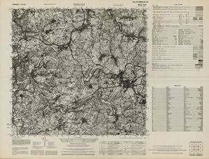 Hier finden Sie ein Meßtischblätter 1:25.000, von Deutschland, aus der Zeit der 1930er Jahre. Diese Karte wurde von Amerikanern damals bei Eisenschmidt gekauft und wurde in den USA für das amerikanische, später britische und französische Militär, bearbeitet. Überarbeitet in Form von Färbungen und Markierungen wurden diese Karten bis in die 50er Jahre.