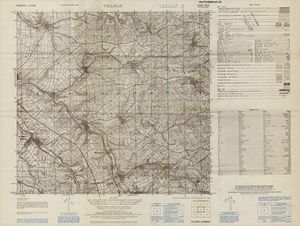 Hier finden Sie ein Meßtischblätter 1:25.000, von Deutschland, aus der Zeit der 1930er Jahre. Diese Karte wurde von Amerikanern damals bei Eisenschmidt gekauft und wurde in den USA für das amerikanische, später britische und französische Militär, bearbeitet. Überarbeitet in Form von Färbungen und Markierungen wurden diese Karten bis in die 50er Jahre.