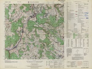 Hier finden Sie ein Meßtischblätter 1:25.000, von Deutschland, aus der Zeit der 1930er Jahre. Diese Karte wurde von Amerikanern damals bei Eisenschmidt gekauft und wurde in den USA für das amerikanische, später britische und französische Militär, bearbeitet. Überarbeitet in Form von Färbungen und Markierungen wurden diese Karten bis in die 50er Jahre.