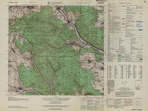 Hier finden Sie ein Meßtischblätter 1:25.000, von Deutschland, aus der Zeit der 1930er Jahre. Diese Karte wurde von Amerikanern damals bei Eisenschmidt gekauft und wurde in den USA für das amerikanische, später britische und französische Militär, bearbeitet. Überarbeitet in Form von Färbungen und Markierungen wurden diese Karten bis in die 50er Jahre.