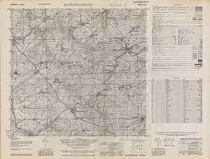 Hier finden Sie ein Meßtischblätter 1:25.000, von Deutschland, aus der Zeit der 1930er Jahre. Diese Karte wurde von Amerikanern damals bei Eisenschmidt gekauft und wurde in den USA für das amerikanische, später britische und französische Militär, bearbeitet. Überarbeitet in Form von Färbungen und Markierungen wurden diese Karten bis in die 50er Jahre.