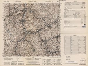Hier finden Sie ein Meßtischblätter 1:25.000, von Deutschland, aus der Zeit der 1930er Jahre. Diese Karte wurde von Amerikanern damals bei Eisenschmidt gekauft und wurde in den USA für das amerikanische, später britische und französische Militär, bearbeitet. Überarbeitet in Form von Färbungen und Markierungen wurden diese Karten bis in die 50er Jahre.