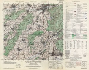 Hier finden Sie ein Meßtischblätter 1:25.000, von Deutschland, aus der Zeit der 1930er Jahre. Diese Karte wurde von Amerikanern damals bei Eisenschmidt gekauft und wurde in den USA für das amerikanische, später britische und französische Militär, bearbeitet. Überarbeitet in Form von Färbungen und Markierungen wurden diese Karten bis in die 50er Jahre.