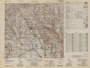 Hier finden Sie ein Meßtischblätter 1:25.000, von Deutschland, aus der Zeit der 1930er Jahre. Diese Karte wurde von Amerikanern damals bei Eisenschmidt gekauft und wurde in den USA für das amerikanische, später britische und französische Militär, bearbeitet. Überarbeitet in Form von Färbungen und Markierungen wurden diese Karten bis in die 50er Jahre.
