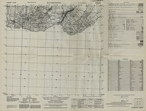 Hier finden Sie ein Meßtischblätter 1:25.000, von Deutschland, aus der Zeit der 1930er Jahre. Diese Karte wurde von Amerikanern damals bei Eisenschmidt gekauft und wurde in den USA für das amerikanische, später britische und französische Militär, bearbeitet. Überarbeitet in Form von Färbungen und Markierungen wurden diese Karten bis in die 50er Jahre.