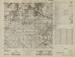 Hier finden Sie ein Meßtischblätter 1:25.000, von Deutschland, aus der Zeit der 1930er Jahre. Diese Karte wurde von Amerikanern damals bei Eisenschmidt gekauft und wurde in den USA für das amerikanische, später britische und französische Militär, bearbeitet. Überarbeitet in Form von Färbungen und Markierungen wurden diese Karten bis in die 50er Jahre.
