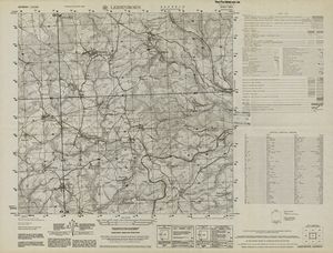 Hier finden Sie ein Meßtischblätter 1:25.000, von Deutschland, aus der Zeit der 1930er Jahre. Diese Karte wurde von Amerikanern damals bei Eisenschmidt gekauft und wurde in den USA für das amerikanische, später britische und französische Militär, bearbeitet. Überarbeitet in Form von Färbungen und Markierungen wurden diese Karten bis in die 50er Jahre.
