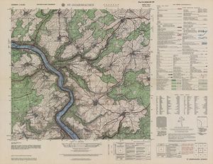 Hier finden Sie ein Meßtischblätter 1:25.000, von Deutschland, aus der Zeit der 1930er Jahre. Diese Karte wurde von Amerikanern damals bei Eisenschmidt gekauft und wurde in den USA für das amerikanische, später britische und französische Militär, bearbeitet. Überarbeitet in Form von Färbungen und Markierungen wurden diese Karten bis in die 50er Jahre.