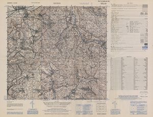 Hier finden Sie ein Meßtischblätter 1:25.000, von Deutschland, aus der Zeit der 1930er Jahre. Diese Karte wurde von Amerikanern damals bei Eisenschmidt gekauft und wurde in den USA für das amerikanische, später britische und französische Militär, bearbeitet. Überarbeitet in Form von Färbungen und Markierungen wurden diese Karten bis in die 50er Jahre.