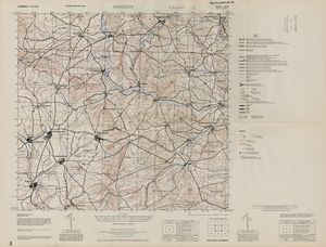 Hier finden Sie ein Meßtischblätter 1:25.000, von Deutschland, aus der Zeit der 1930er Jahre. Diese Karte wurde von Amerikanern damals bei Eisenschmidt gekauft und wurde in den USA für das amerikanische, später britische und französische Militär, bearbeitet. Überarbeitet in Form von Färbungen und Markierungen wurden diese Karten bis in die 50er Jahre.