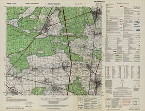 Hier finden Sie ein Meßtischblätter 1:25.000, von Deutschland, aus der Zeit der 1930er Jahre. Diese Karte wurde von Amerikanern damals bei Eisenschmidt gekauft und wurde in den USA für das amerikanische, später britische und französische Militär, bearbeitet. Überarbeitet in Form von Färbungen und Markierungen wurden diese Karten bis in die 50er Jahre.