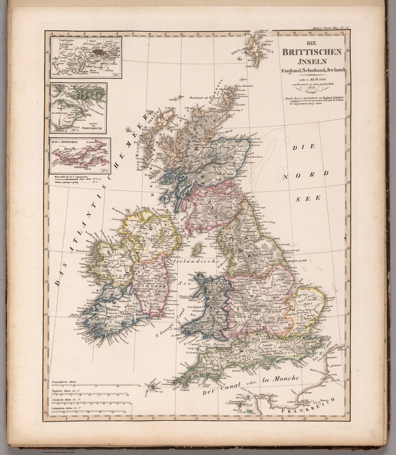 Die Britischen Inseln. Ünersicht – Stielers Weltatlas von 1881 – Karte 45)